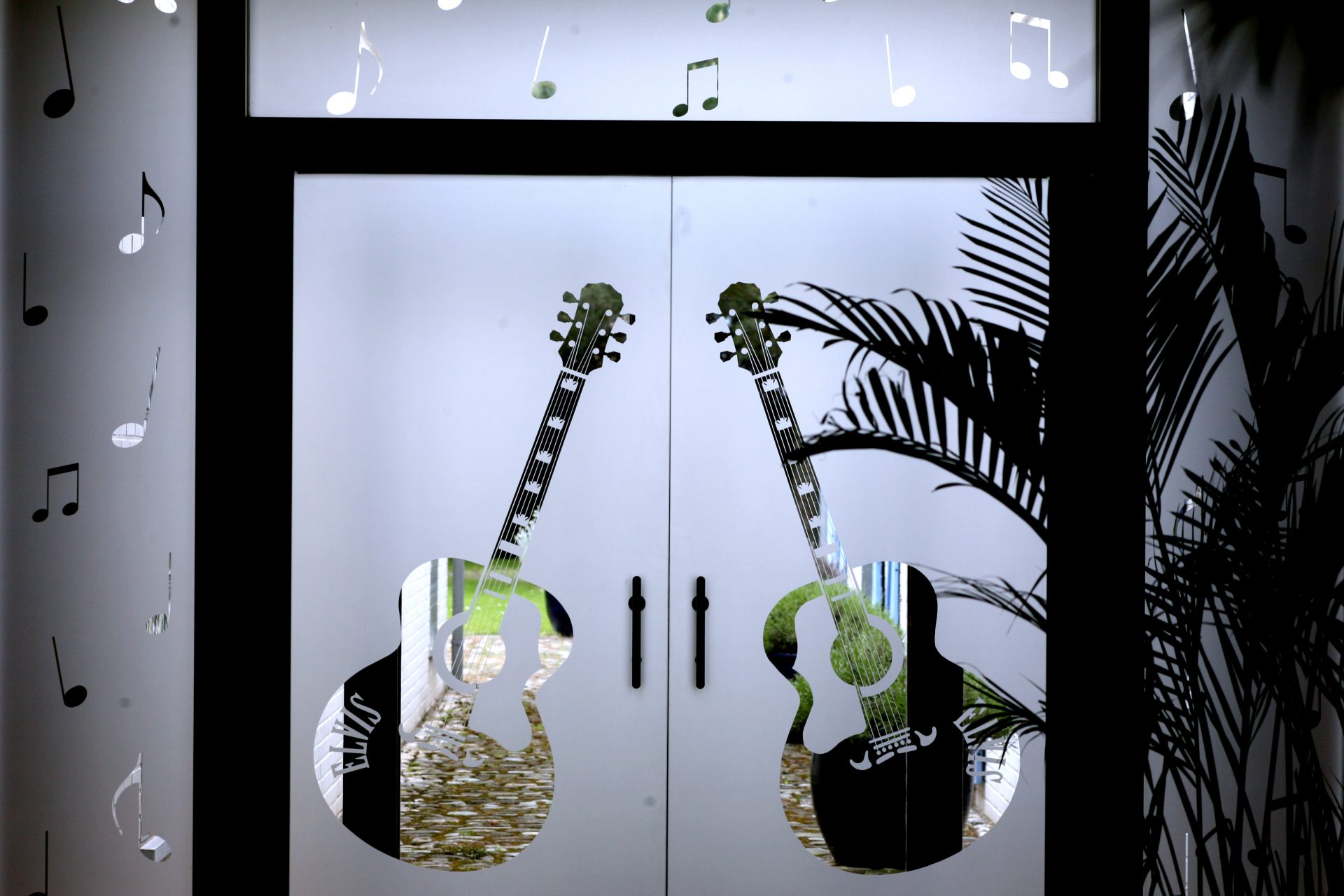 • recreational area; “the record room” equipped with a large screen TV & PlayStation